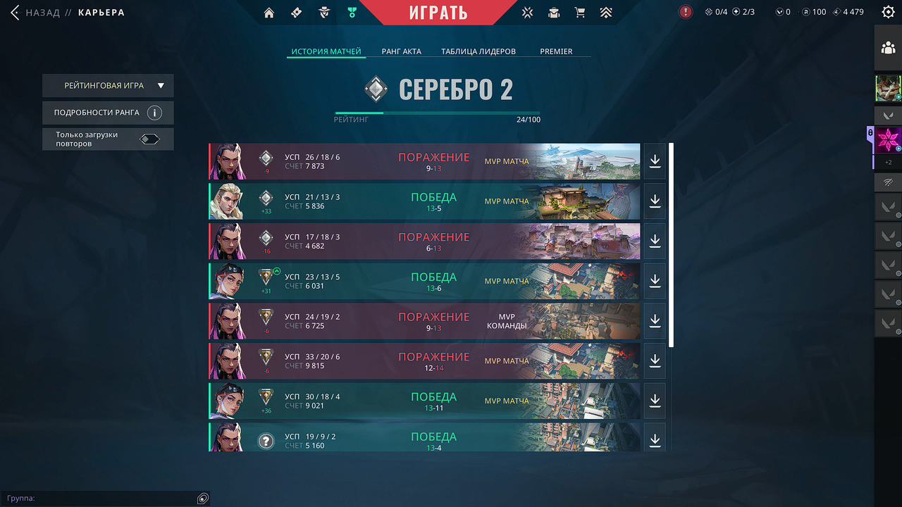 Ранг Серебро 2 · Кол-во скинов 1
